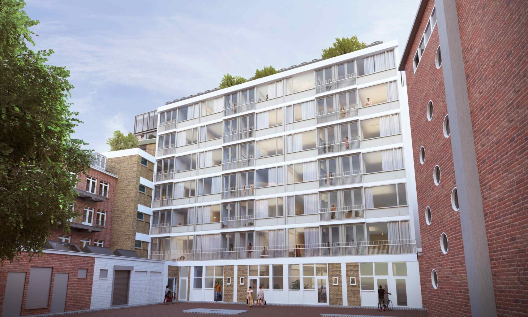 Het gebouw wordt door BIK bouw en Giesbers uitgebreid met drie extra verdiepingen en een aanbouw aan de achterzijde. Tegelijkertijd worden de historische elementen, zoals de karakteristieke sixties-façade en het authentieke marmeren trappenhuis, zorgvuldig hersteld. De begane grond behoudt haar Retail functie aan de Westblaak. Op de hoek van het gebouw markeert het gevelreliëf ‘Het Gezin’ van Louis van Roode een herkenbaar ankerpunt. Dit kunstwerk is een integraal onderdeel van de architectuur en een typisch voorbeeld van wederopbouwkunst.
